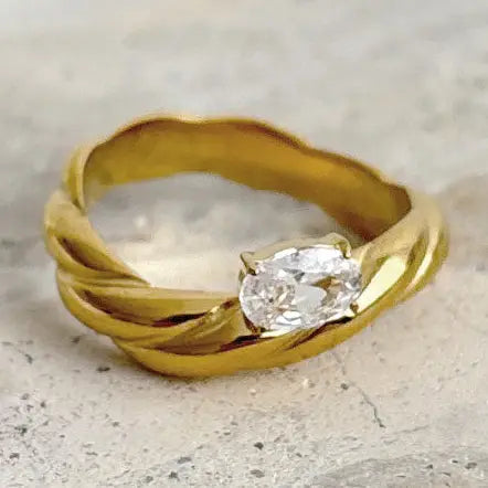 Elodie Oval Crystal 18K Gold Plated Ring
